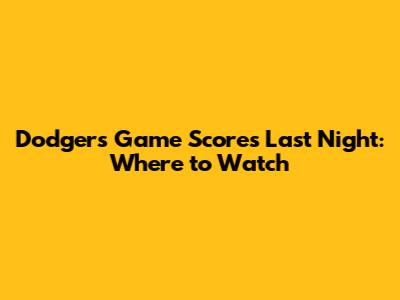 Dodgers Game Scores Last Night: Where To Watch