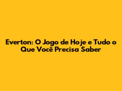 Everton: O Jogo De Hoje E Tudo O Que Você Precisa Saber