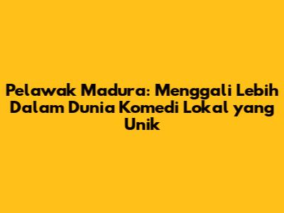 Ciri Khas dan Gaya Komedi Pelawak Madura