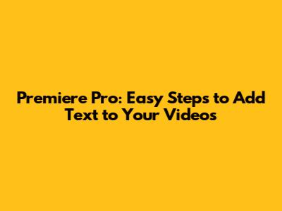 Premiere Pro: Easy Steps To Add Text To Your Videos